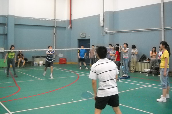 在相互介绍认识之后,在两块场地上,首先进行了单打比赛作为热身。随后研究生同学与发展规划处老师交叉组队进行双打比赛,每对组合中同学与老师逐渐打出配合,使比赛十分激烈,不同组合各有输赢。活动中大家都抱着相互交流的心态,这种和谐的气氛一直持续到活动结束。